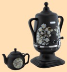 Объем 3,2 литра, на самоваре установлен терморегулятор