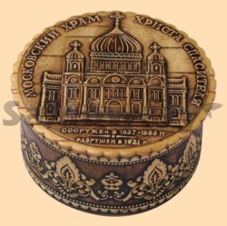 Шкатулка из уральской бересты Храм Христа Спасителя (7,5 см) (арт. 11303)