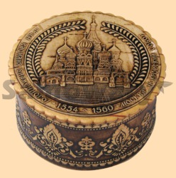 Шкатулка из уральской бересты Храм Василия Блаженного (7,5 см) (арт. 11304)