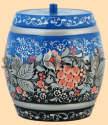 Каталог » Роспись - Синяя по серебру » Банки и бочонки Синяя по серебру роспись » Бочонок новая хохлома Большой
