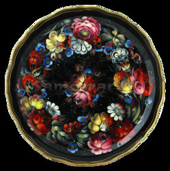 Каталог » Подносы Жостово » Подносы Жостово круглые » Поднос жостовский Фантазия на чёрном (круг большой)
