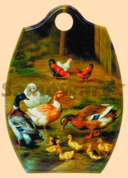 Размер 13 на 19 см Цветной красочный рисунок, сверху покрыт лаком Материал доски: дерево Толщина разделочной доски 8 мм Производитель Россия
