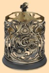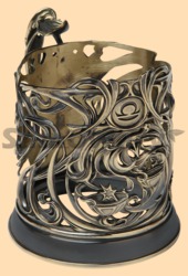 Диаметр основания - 7,5 см, высота подстаканника (без стакана) - 9 см. Материал - латунь (литье) Покрытие - никель (чернение) Данный подстаканник дополнительно можно покрыть серебром и позолотить некоторые его элементы. Это увеличит стоимость подстаканника на несколько тысяч рублей, более подробную информацию по срокам и ценам вы можете уточнить у наших менеджеров. Производитель Россия