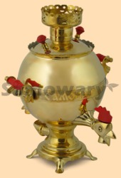 Самовар: - объем 3 литра - высота самовара 35 см - ширина самовара по ручки 28 см - при закипании издает свист - материал: полированная латунь (жёлтый цвет) - мощность ТЭНа 1 кВт, время закипания 15-20 минут - вес самовара 2,5 кг - производитель Россия (Тула)