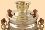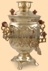 Самовар: - объем 3 литра - высота самовара 36 см - ширина самовара по ручки 29 см - материал: полированная латунь (жёлтый цвет) - ручки выполнены из дерева и покрашены коричневой морилкой - мощность ТЭНа 1 кВт, время закипания 15-20 минут - вес самовара 2,4 кг - производитель Тула