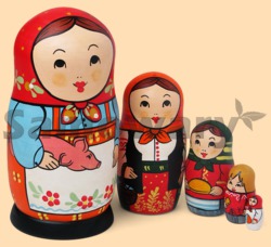 Каталог » Матрёшки » Матрёшки 5-ти местные (сюжетные) » Матрёшка Девочка со свинкой (большая, 5 мест)