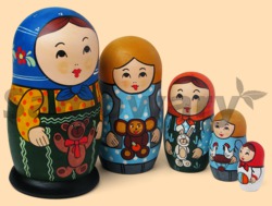 Каталог » Матрёшки » Матрёшки 5-ти местные (сюжетные) » Матрёшка Девочка с мишкой (большая, 5 мест)