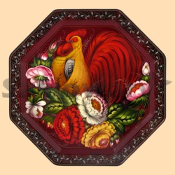 Каталог » Подносы Жостово » Подносы Жостово квадратные, прямоугольные » Поднос жостовский Деревенский на красном (многогранный)