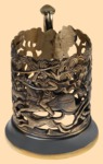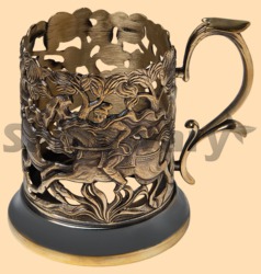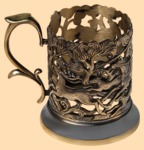 Диаметр основания - 7,5 см, высота подстаканника (без стакана) - 9 см. Материал - латунь (литье) Покрытие - никель (чернение) Данный подстаканник дополнительно можно покрыть серебром и позолотить некоторые его элементы. Это увеличит стоимость подстаканника на несколько тысяч рублей, более подробную информацию по срокам и ценам вы можете уточнить у наших менеджеров. Производитель Россия