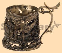 Диаметр основания - 7,5 см, высота подстаканника (без стакана) - 9 см. Материал - латунь (литье) Покрытие - никель (чернение) Данный подстаканник дополнительно можно покрыть серебром и позолотить некоторые его элементы. Это увеличит стоимость подстаканника на несколько тысяч рублей, более подробную информацию по срокам и ценам вы можете уточнить у наших менеджеров. Производитель Россия