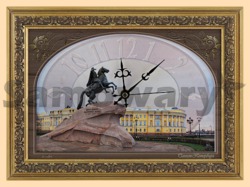 Каталог » Часы » Часы с видами Петербурга » Часы настенные с панорамным видом Медный всадник (20*30 см)