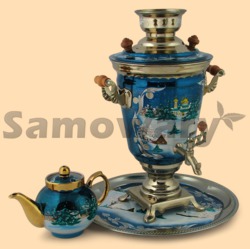 Каталог » Самовары ЭЛЕКТРИЧЕСКИЕ » Самовары электрические на 4л в наборе » Набор электрический Зимняя деревушка рюмка (4л)