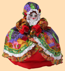 Высота куклы на чайник 35-40 см (в зависимости от модели куклы) Диаметр основания 22-25 см Используется для сохранения тепла заварочного чайника, который ставится на самовар Материал хлопок и лён Производитель Россия