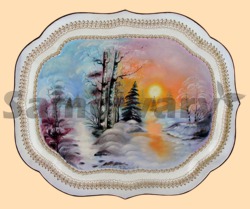 Поднос изготовлен в деревне Жостово - основание металл, далее грунтовка, РУЧНАЯ роспись в несколько заходов, 2-3 слоя лака чтобы защитить рисунок и сам поднос (причем лаком он покрывается с двух сторон - спереди и сзади). ВСЕ подносы изготовлены полностью вручную, частными художниками, которые живут в деревне Жостово, именно поэтому эти подносы и называются ЖОСТОВСКИМИ. Но они не фабричные, поэтому и цена дешевле! Сзади нет клейма фабрики, но зато на рисунке с лицевой стороны есть подпись художника, который нарисовал этот поднос. И да, этот художник обычно раньше как раз и работал на этой Жостовской фабрики. Так что выбор за вами - либо фабричный дороже, либо от частного художника, но который рисует на себя. Причем учтите, фабричные подносы, кроме того что стоят дороже (если сравнивать один и тот же размер подноса) всегда имеют более бедный рисунок и большие фоновые поля.