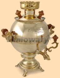 Самовар: - объем 3 литра - высота самовара 36 см - ширина самовара по ручки 29 см - материал: полированная латунь (жёлтый цвет) - ручки выполнены из дерева и покрашены коричневой морилкой - мощность ТЭНа 1 кВт, время закипания 15-20 минут - вес самовара 2,4 кг - производитель Россия (Тула)