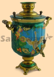 Самовар: - объем 10 литров - высота самовара 49 см - ширина самовара по ручки 37 см - материал: латунь - расписан вручную, покрыт лаком - мощность ТЭНа 1 кВт, время закипания 30 минут - вес самовара 4,1 кг Производитель Россия (Тула)