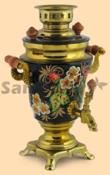 Самовар: - объем 1,5 литра - высота самовара 33 см - ширина самовара по ручки 24 см - материал: латунь - расписан вручную, покрыт лаком - мощность ТЭНа 1 кВт, время закипания 15 минут - вес самовара 2 кг - производитель Тула