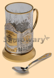 Материал никелированная латунь с позолотой В комплекте подстаканник, хрустальный стакан, чайная ложка Производитель Кольчугино