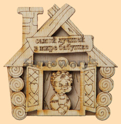 Каталог » Магниты » Магниты разные » Магнит Бабуля в домике (деревянный)
