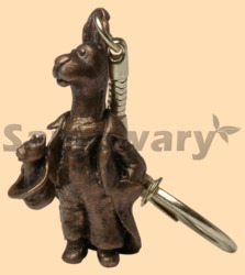 Брелок изготовлен из бронзы, поэтому он может быть покрыт патиной. Справка: патина (о т итальянского patina) — это особый налет разных оттенков, который образуется на поверхности меди, бронзы и латуни. Он появляется на изделиях под воздействием кислорода, влажности и других факторов окружающей среды.