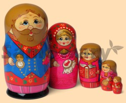Каталог » Матрёшки » Матрёшки 5-ти местные (сюжетные) » Матрёшка Купец с кошельком (5 мест)