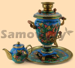 Каталог » Самовары ЭЛЕКТРИЧЕСКИЕ » Самовары электрические Авторские на 3л в наборе » Набор электрический Олени (3л)