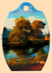 Высота 20 см, ширина 29 см Цветной красочный рисунок, сверху покрыт лаком Материал доски: дерево Толщина разделочной доски 8 мм Производитель Россия