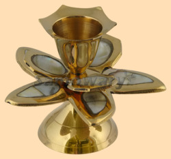 Высота подсвечника 7 см Диаметр отверстия для свечи 45 мм Материал - латунь со вставками из перламутра Производитель Индия