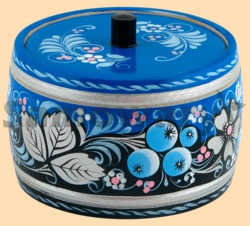 Каталог » Роспись - Синяя по серебру » Банки и бочонки Синяя по серебру роспись » Бочонок роспись по серебру Уют