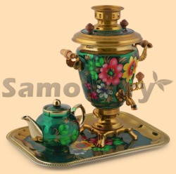 Каталог » Самовары ЭЛЕКТРИЧЕСКИЕ » Самовары электрические на 3л в наборе (расписные - цветы и ягоды) » Набор электрический Цветочный на зелёном (3л)