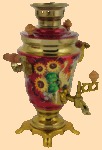 Самовар: - объем 1,5 литра - высота самовара 33 см - ширина самовара по ручки 24 см - материал: латунь - расписан вручную, покрыт лаком - мощность ТЭНа 1 кВт, время закипания 15 минут - вес самовара 2 кг - производитель Тула