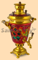 Самовар: - объем 5 литров - высота самовара 48 см - ширина самовара по ручки 36 см - материал: латунь - расписан вручную, покрыт лаком - растапливается с помощью дров или шишек - вес самовара 5 кг Производитель Тула