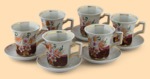 В комплекте: заварочный чайник, поднос, 6 чашек с блюдцами Самовар - - объем 3 литра - материал: фарфор - расписан вручную - мощность ТЭНа 1 кВт Поднос - - диаметр 30 см - материал: фарфор Заварочный чайник - - объем 1 литр - материал: фарфор Производитель Россия (Кисловодск)