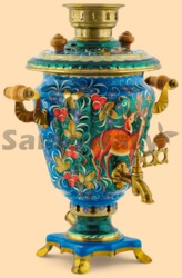 Самовар: - объем 3 литра - высота самовара 36 см - ширина самовара по ручки 29 см - материал: латунь - расписан вручную, покрыт лаком - мощность ТЭНа 1 кВт, время закипания 15-20 минут - вес самовара 2,4 кг - производитель Тула