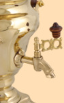 Самовар: - объем 3 литра - высота самовара 36 см - ширина самовара по ручки 29 см - материал: полированная латунь (жёлтый цвет) - ручки выполнены из дерева и покрашены коричневой морилкой - мощность ТЭНа 1 кВт, время закипания 15-20 минут - вес самовара 2,4 кг - производитель Россия (Тула)