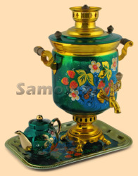 В комплекте: заварочный чайник, поднос Самовар: - объем 7 литров - высота самовара 48 см - ширина самовара по ручки 38 см - материал: латунь - расписан вручную, покрыт лаком - растапливается с помощью дров или шишек - вес самовара 5 кг Поднос: - материал металл Чайник: - объем чайника 700 мл - материал: фарфор - расписан вручную, покрыт лаком - вес чайника 500 гр Поднос: - размер 30 на 40 см - материал металл - расписан вручную, покрыт лаком - форма подноса может отличаться от фото, возможные формы подносов - круг (диаметр 35 см), овал (34 на 46 см), прямоугольник (30 на 40 см), арка (23 на 40 см), ключ (31 на 41 см), более подробную информацию вам предоставит менеджер - вес подноса 400 гр Производитель Тула