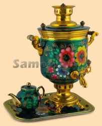 В комплекте: заварочный чайник, поднос Самовар: - объем 7 литров - высота самовара 48 см - ширина самовара по ручки 38 см - материал: латунь - расписан вручную, покрыт лаком - растапливается с помощью дров или шишек - вес самовара 5 кг Поднос: - материал металл Чайник: - объем чайника 700 мл - материал: фарфор - расписан вручную, покрыт лаком - вес чайника 500 гр Поднос: - размер 30 на 40 см - материал металл - расписан вручную, покрыт лаком - форма подноса может отличаться от фото, возможные формы подносов - круг (диаметр 35 см), овал (34 на 46 см), прямоугольник (30 на 40 см), арка (23 на 40 см), ключ (31 на 41 см), более подробную информацию вам предоставит менеджер - вес подноса 400 гр Производитель Тула