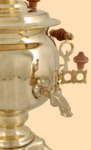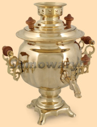 Самовар: - объем 3 литра - высота самовара 36 см - ширина самовара по ручки 29 см - материал: полированная латунь (жёлтый цвет) - ручки выполнены из дерева и покрашены коричневой морилкой - мощность ТЭНа 1 кВт, время закипания 15-20 минут - вес самовара 2,4 кг - производитель Тула