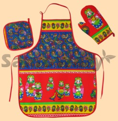 В наборе: фартук, прихватка, прихватка, рукавицаМатериал хлопокПроизводитель Россия