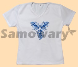 Каталог » Текстиль » Футболки с принтами » Футболка Гжель на белом - цветы (размер XL)