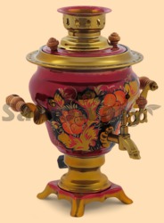 Каталог » Самовары ЭЛЕКТРИЧЕСКИЕ » Самовары электрические на 3л (расписные - цветы и ягоды) » Самовар электрический Ягодки на красном (3л)
