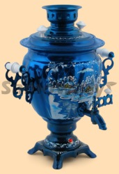 Самовар: - объем 3 литра - высота самовара 37 см - ширина самовара по ручки 28 см - материал: латунь - расписан вручную, покрыт лаком - мощность ТЭНа 1 кВт - на самоваре установлен терморегулятор, который отключает самовар при кипении - вес самовара 2,8 кг Производитель Россия (Тула)