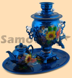 В комплекте заварочный чайник и поднос Самовар: - объем 3 литра - высота самовара 38 см - ширина самовара по ручки 29 см - материал: латунь - расписан вручную, покрыт лаком - мощность ТЭНа 1 кВт, время закипания 15-20 минут - на самоваре установлен терморегулятор, который отключает самовар при кипении - вес самовара 2,5 кг Чайник: - объем чайника 700 мл - материал: фарфор - расписан вручную, покрыт лаком - вес чайника 500 гр Поднос: - размер и форма подноса может отличаться от фото, возможные формы подносов - круг (диаметр 35 см), овал (34 на 46 см), прямоугольник (30 на 40 см), арка (23 на 40 см), ключ (31 на 41 см), более подробную информацию вам предоставит менеджер. - вес подноса 400 гр Производитель Россия (Тула)
