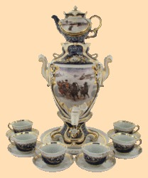 Каталог » Самовары фарфоровые » Самовары фарфоровые в наборе » Самовар в наборе фарфоровый Тройка зима (4,5л, живопись)