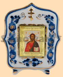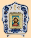 Каталог » Гжель » Киоты, лики, образы, плакетки Гжель » Киот Гжель Образ Иисуса Христа позолоченный №4
