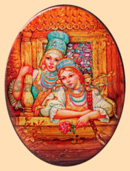 Каталог » Магниты » Магниты овальные » Магнит овальный Девицы в окошке