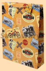 Каталог » Подарочные пакеты » Подарочные пакеты бумажные от 40 см до 50 см » Пакет Ретро мотоциклы (41 на 49 см)