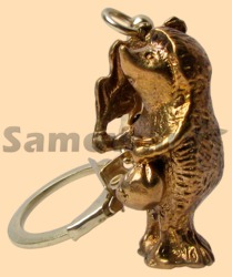 Брелок изготовлен из бронзы, поэтому он может быть покрыт патиной. Справка: патина (о т итальянского patina) — это особый налет разных оттенков, который образуется на поверхности меди, бронзы и латуни. Он появляется на изделиях под воздействием кислорода, влажности и других факторов окружающей среды.