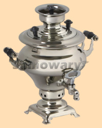 Сувенирный угольный самовар в форме вазы, покрыт НОВЫМ никелированным покрытием Съемные части: крышка, ветка крана, колпачок, конфорка. Размеры самовара 14 на 11,5 на 11 см Объём 125 мл воды Вес самовара 270 гр. Материал латунь, покрытая никелем, пластиковые ручки (цвет серебро) Техника изготовления - давление по штампам, литье, никелирование, гравирование Сувенирный самовар "Ясная Поляна" представляет собой уменьшенную в 56 раз копию самовара, хранящегося в музее-усадьбе "Ясная Поляна", который принадлежал некогда семье Л.?Н. Толстого. Объем оригинала 7 литров Самовары производились в период с 1964 по 1987 годы Производитель машиностроительный завод им. Б.Ванникова "Штамп", СССР, Тула, 2-я половина XX века