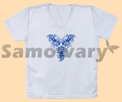 Каталог » Текстиль » Футболки с принтами » Футболка Гжель на белом - цветы (размер L)